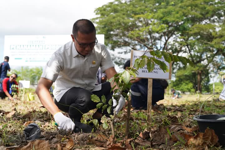 SUNGAILIAT, BANGKA – Wakil Ketua DPRD Provinsi Kepulauan Bangka Belitung, Eddy Iskandar, menunjukkan komitmennya terhadap pelestarian lingkungan dengan turut serta dalam kegiatan Gerakan Penanaman Pohon Bersama yang diselenggarakan di Balai Karya PT Timah, Air Kantung, Sungailiat, Kabupaten Bangka, Jumat (28/2/2025).