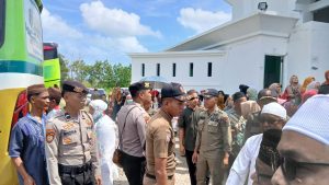 Personel pengamanan tak hanya memastikan lalu lintas dan keamanan sekitar masjid tetap terkendali, tetapi juga membantu kelancaran proses naik kendaraan hingga pelepasan jemaah oleh pemerintah daerah.