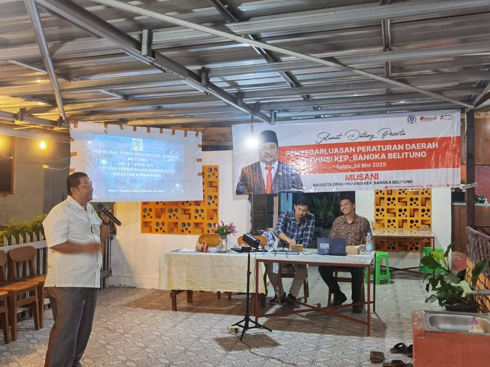 Hal tersebut menjadi perhatian serius Anggota DPRD Provinsi Kepulauan Babel, Musani, yang menjadikan Peraturan Daerah (Perda) Nomor 2 Tahun 2017 tentang Pengelolaan Sumber Daya Kelautan dan Perikanan sebagai materi utama dalam kegiatan Penyebarluasan Perda, bertempat di Lesehan Hanif, Kelurahan Toboali, Kabupaten Bangka Selatan, Sabtu malam (24/5/2025).