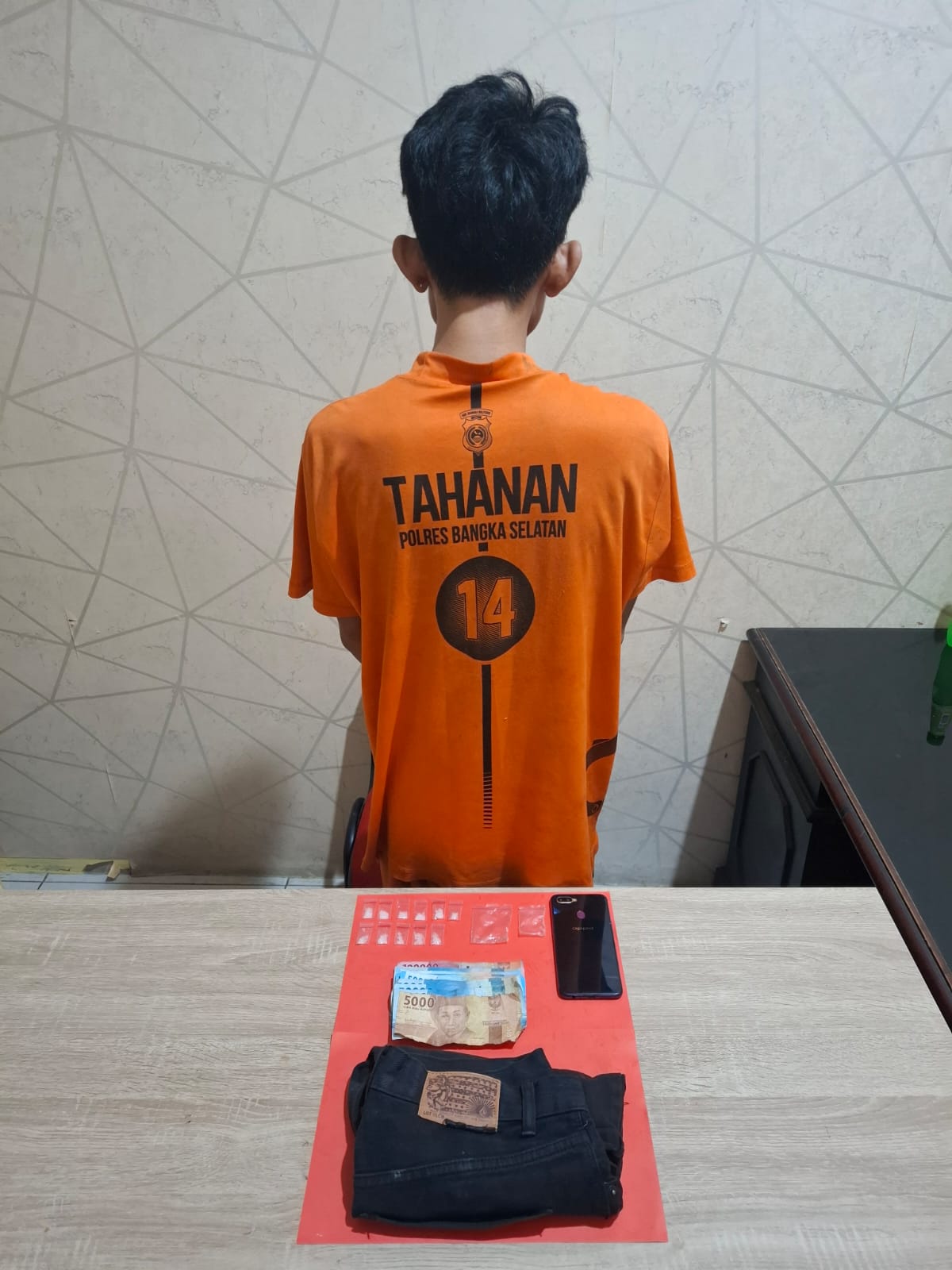Kini, tersangka telah resmi ditahan di Rutan Polres Bangka Selatan dan dikenakan Pasal 114 ayat (1) atau Pasal 112 ayat (1) Undang-Undang Republik Indonesia Nomor 35 Tahun 2009 tentang Narkotika, dengan ancaman hukuman minimal 5 tahun hingga maksimal 20 tahun penjara.