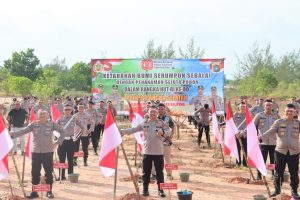 TOBOALI – Dalam rangka memperingati Hari Ulang Tahun (HUT) Kemerdekaan Republik Indonesia ke-80 tahun 2025, Polres Bangka Selatan melaksanakan kegiatan Ketahanan Bumi Serumpun Sebalai dengan penanaman pohon, Jumat (15/8/2025) pagi.