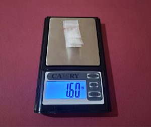 5 bungkus plastik bening berukuran kecil berisi kristal putih diduga sabu dengan berat bruto 1,60 gram,