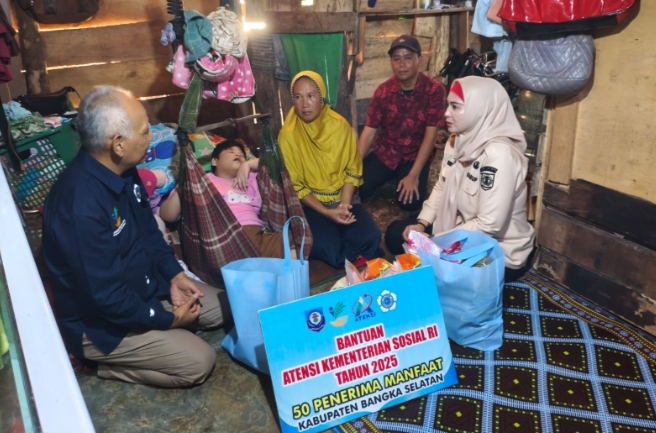 Bantuan ATENSI berupa paket sembako, nutrisi tambahan, dan alat kebersihan diberikan kepada 50 penerima manfaat di Kabupaten Bangka Selatan. Kegiatan ini juga dihadiri oleh Koordinator Pengabdian kepada Masyarakat Poltekesos Bandung, Drs. Suradi, M.Si., yang mewakili Kemensos RI.