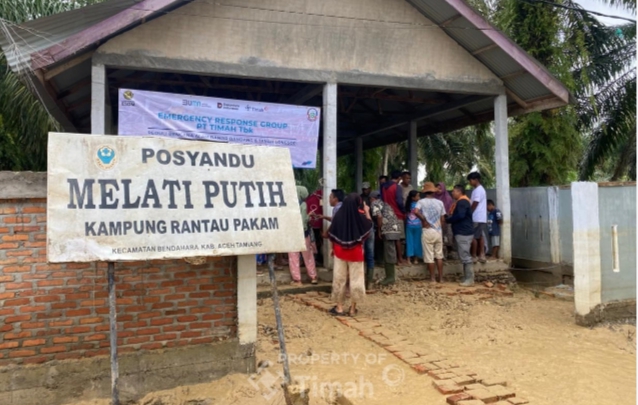 Selain Aceh Tamiang, Tim ERG PT TIMAH Tbk bersama Posko Tanggap Bencana ESDM juga memberikan pelayanan di Dusun Cempaka, Desa Teluk Bakung, Kecamatan Tanjung Pura, Kabupaten Langkat, Sumatera Utara.