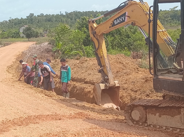 Satgas TMMD Ke-127 Kodim 0432/Basel Kebut Pembuatan Siring Jalan di Desa Penutuk