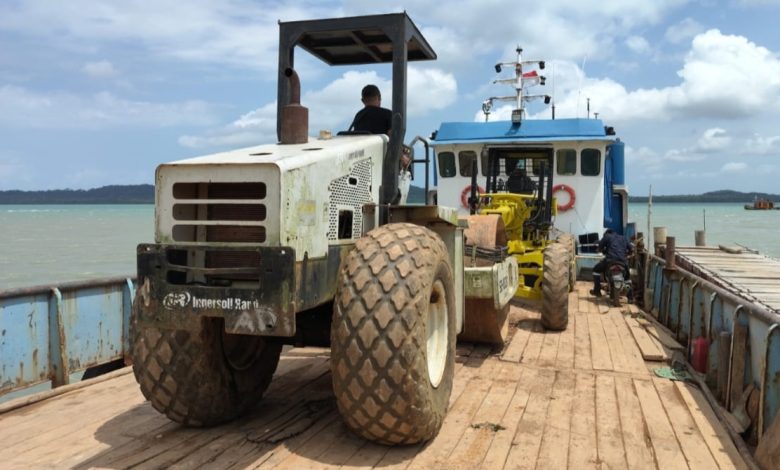 Penuh Perjuangan, Satgas TMMD 127 Kodim 0432/Basel Kirim Alat Berat dan Material ke Pulau Lepar