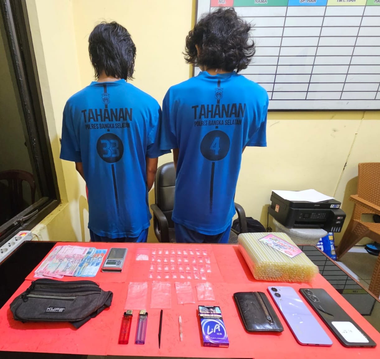 Kapolres Bangka Selatan AKBP Agus Arif Wijayanto melalui Ps Kasi Humas Iptu G.J. Budi, SH, membenarkan adanya penangkapan tersebut. Dari hasil penggeledahan, petugas menemukan puluhan paket sabu yang diduga siap diedarkan.