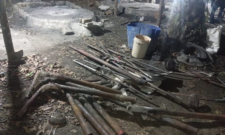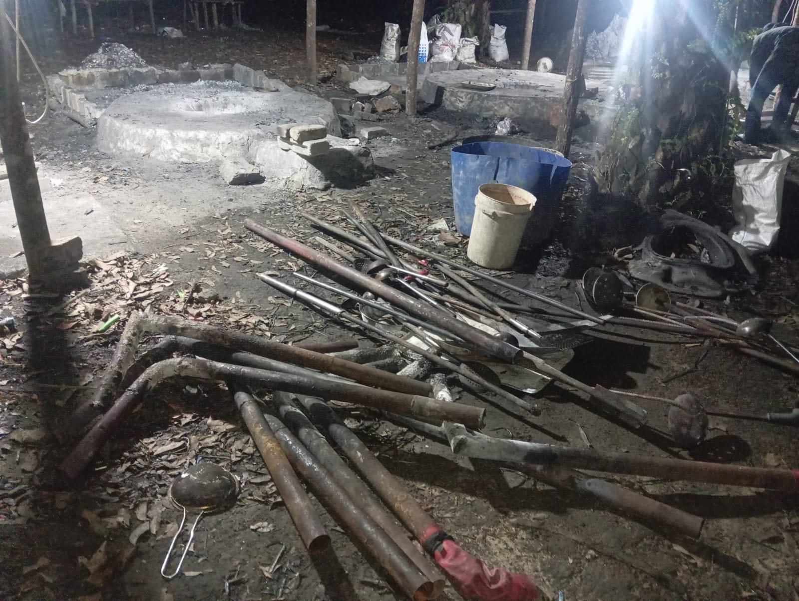 Di lokasi, petugas menemukan satu bangunan semi permanen yang digunakan sebagai tempat produksi, satu pondok untuk istirahat, serta satu kamar mandi. Selain itu, terdapat lima lubang tungku pembakaran yang digunakan dalam proses peleburan.