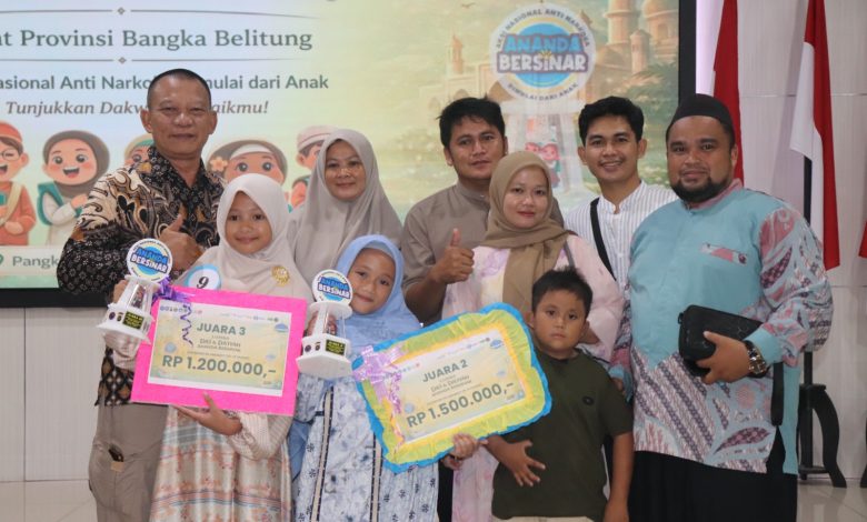 PANGKALPINANG, GARUDAMERDEKA.ID — Badan Narkotika Nasional (BNN) Kabupaten Bangka Selatan berhasil meraih dua piala dalam ajang Lomba Da’i dan Da’iyah ANANDA Bersinar tingkat Provinsi Kepulauan Bangka Belitung.